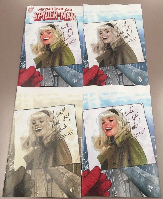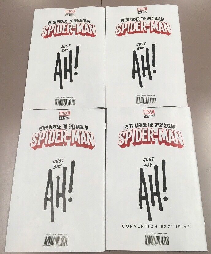 Exclusive covers done by artists only for sale at the convention saw four different covers from Adam Hughes for Spectacular Spider-Man #300. However, none of these have sold for more than a bit above their price at the convention unless they were signed by Hughes himself.