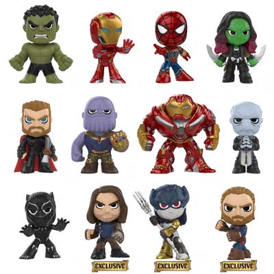 Infinity War Mystery Minis are up next. Three stores get three exclusives apiece. Hot Topic is where you will find Captain America, Winter Soldier, and Proxima Midnight. At Walmart they will have Iron Man with wings, Falcon and Corvus Glaive. And finally at target you will be able to track down Vision, Teen Groot, and Black Widow.