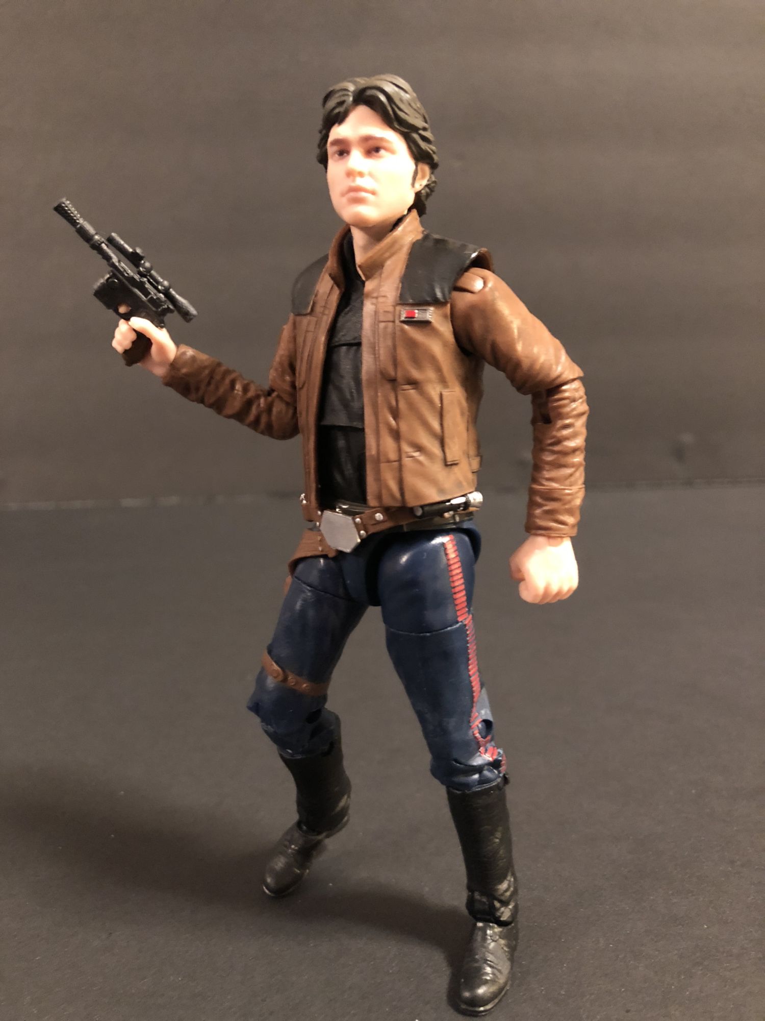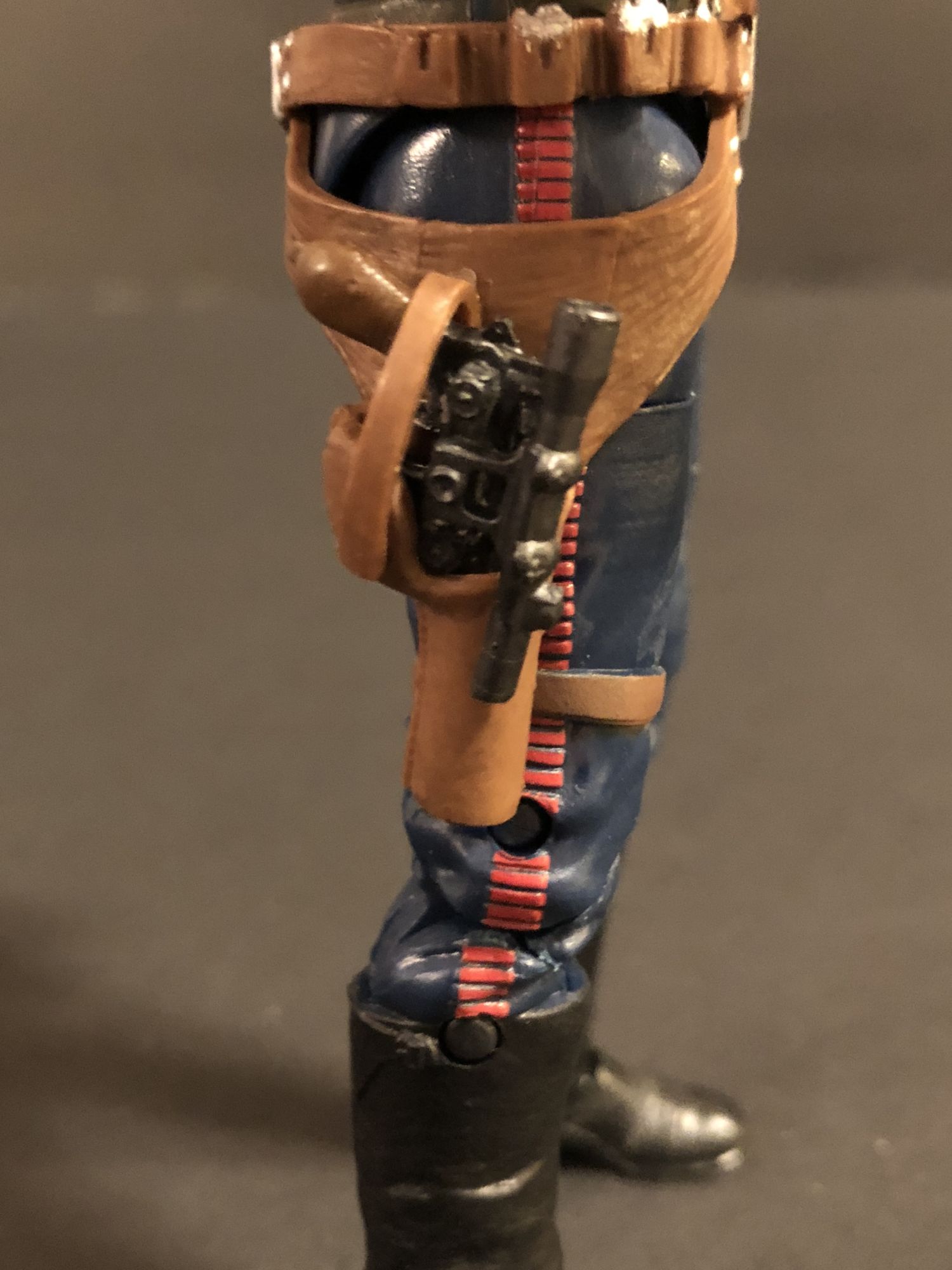 These figures take advantage of the new face print technology that Hasbro is using on their figures now, and boy does it make a world of difference. This looks like a pretty spot on Alden Ehrenreich as far as I am concerned. A little bit more emotion on the face would have been nice, like a sly little smile or such. I don’t hate it, but it could have been better. Other than that- the figure is pretty great. good range of motion on the arms, mine also had a great paint job. I will always pose Han with his hand on the holster forever, so achieving that pose was easy. Be careful with the holster though. The strap is very thin and will rip easily.