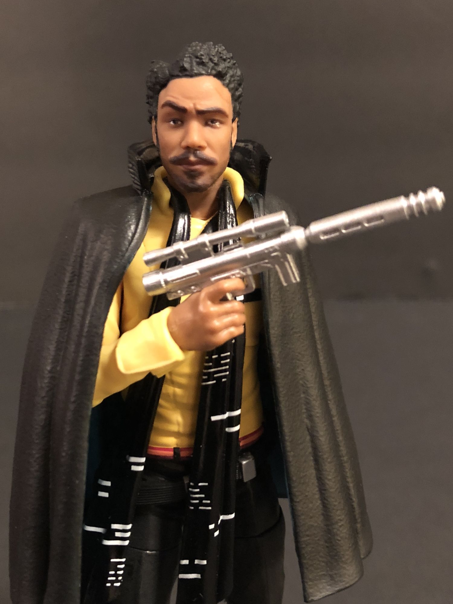 Lando is perfect. I will tell you right now, besides having a plastic cape instead of cloth, there is zero wrong with this figure. A perfect likeness of Donald Glover. An amazing scarf. Colors that pop. A great blaster that fits into the extended holster perfectly. Just a stellar figure. Get him as soon as possible.