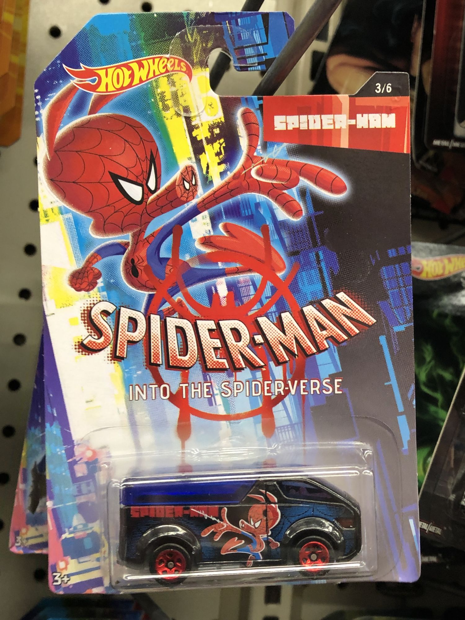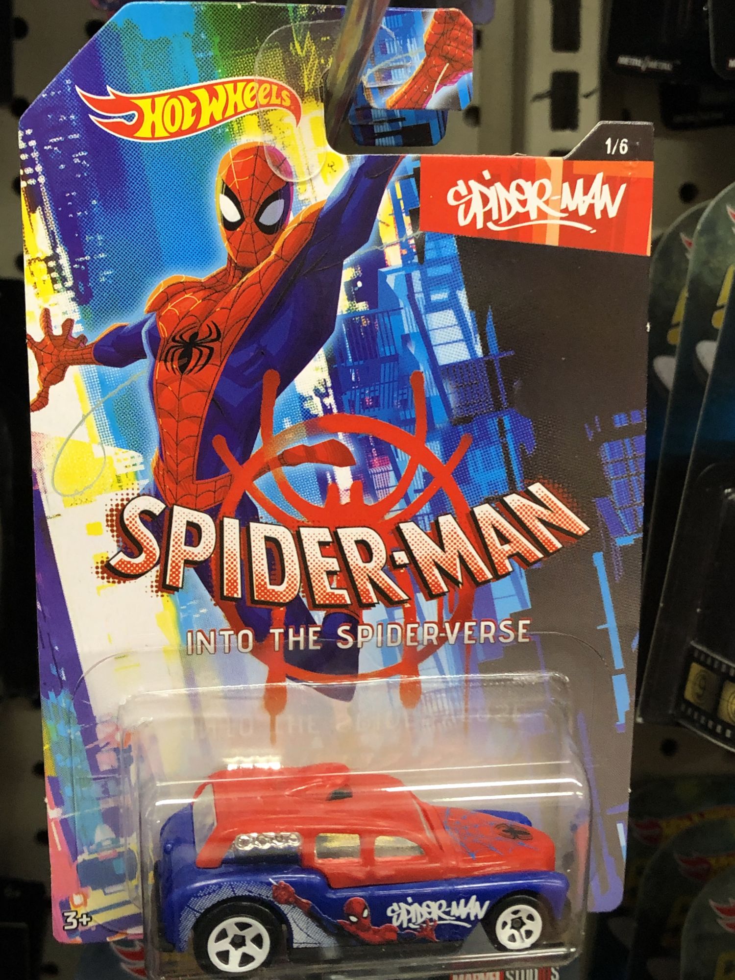 Also wherever you can find Hot Wheels, there is a new set of Spider-Verse collectors series vehicles. Miles Morales, Spider-Man, SP//DR, Spider-Gwen, and even Spider-Ham all have special edition cars available.