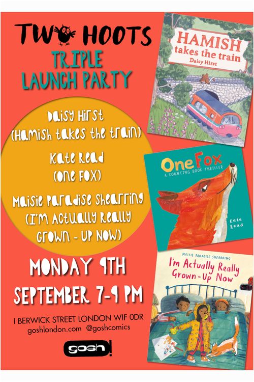 - Two Hoots Triple Launch Party,7-9pm, Gosh Comics, London. Trio of children’s authors launching their new books from Two-Hoots.