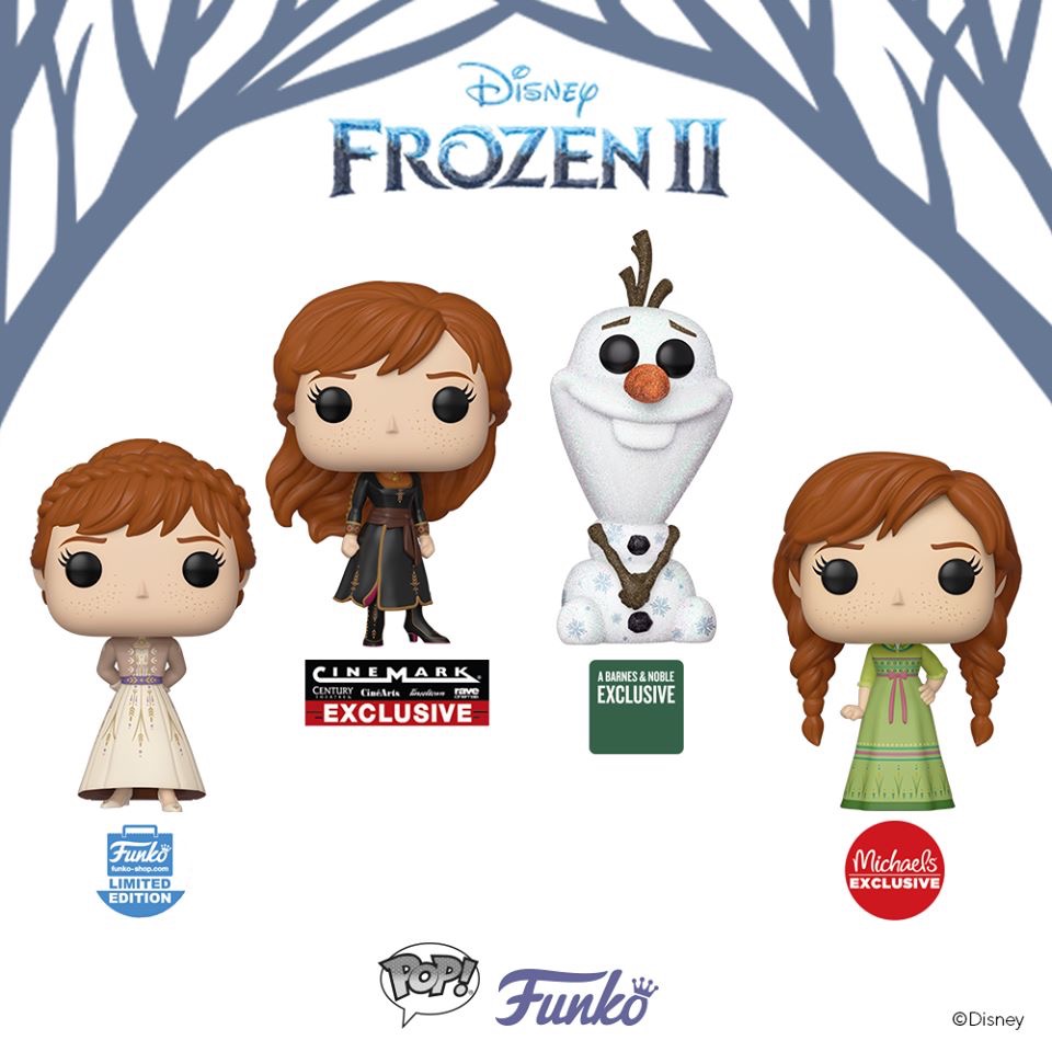 Pop! Elsa is a Walmart exclusive. Pop! Anna is a Cinemark exclusive. Pop! Elsa is a Hot Topic exclusive. Pop! Anna is a Funko Shop exclusive. Pop! Elsa is an Amazon exclusive. Pop! Anna is a Michaels exclusive. Pop! Elsa is a Target exclusive.