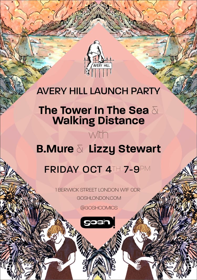 - Avery Hill Book Launch; The Tower in the Sea and Walking Distance. B. Mure’s The Tower in the Sea is the third in his series of Ismyre books, which we absolutely devour on release. These tales of urban life and magic are unique in their feel and look, and each is accessible to new readers in its own right. Lizzy Stewart’s new book, Walking Distance, looks to be a fascinating mix of autobiography, philosophy and reportage. Ample copies of both plus the creator’s other works available on the night. Gosh Comics, London, 7-9pm.