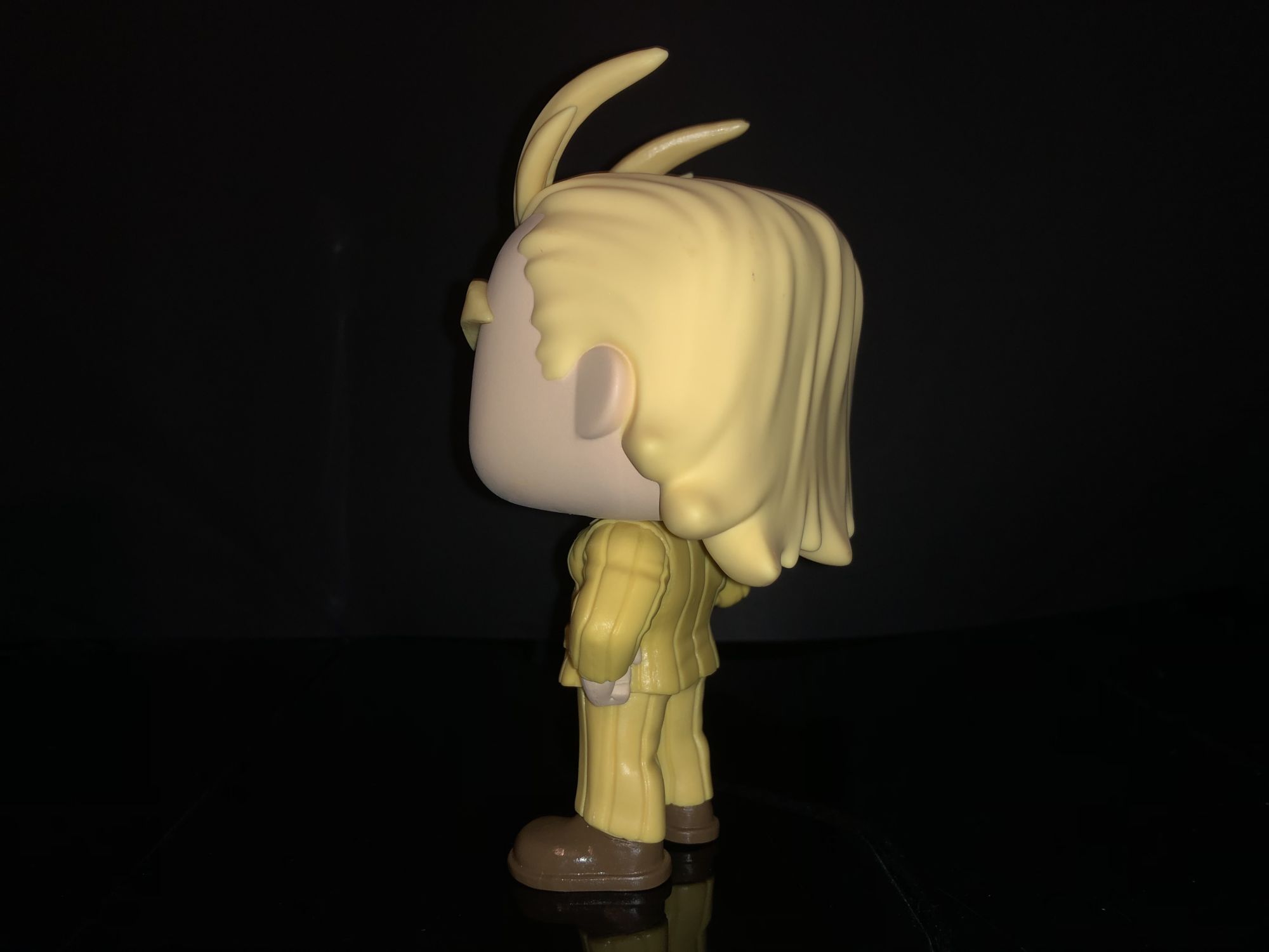 First off, we’re going to look at the All Might teacher, which is based off the original mode with just a new outfit. All Might teacher is posing his original mold with posed with his thumbs up. The newest addition is the fact that he’s in his yellow teaching suit. I do like this Funko Pop figure it is quite different then you would usually expect. The only issue I did have was his feet were not properly flat so he was having issues standing up as he did not come with a display stand. Besides that the character design is beautifully crafted and definitely recommend it for any My Hero Academia Funko collection