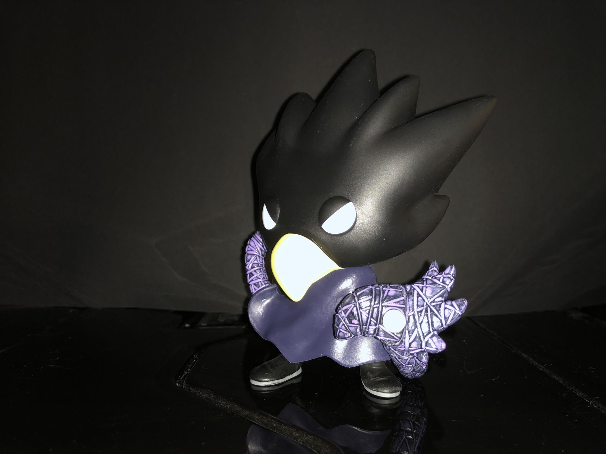 This Tokoyami Funko is highly detailed in does the character justice. With his bird face and the long black coat, they really captured this aspect in their famous Funko format. I really love the detail that they put on Dark Shadow himself as he wraps around the body of Tokoyami. You can even see some sort of dark cutting style detail even on that character and I just love what they did with it. I don’t think we’ll see much of a change in a metallic version but you can at Funko Pop Tee so you can’t really complain.