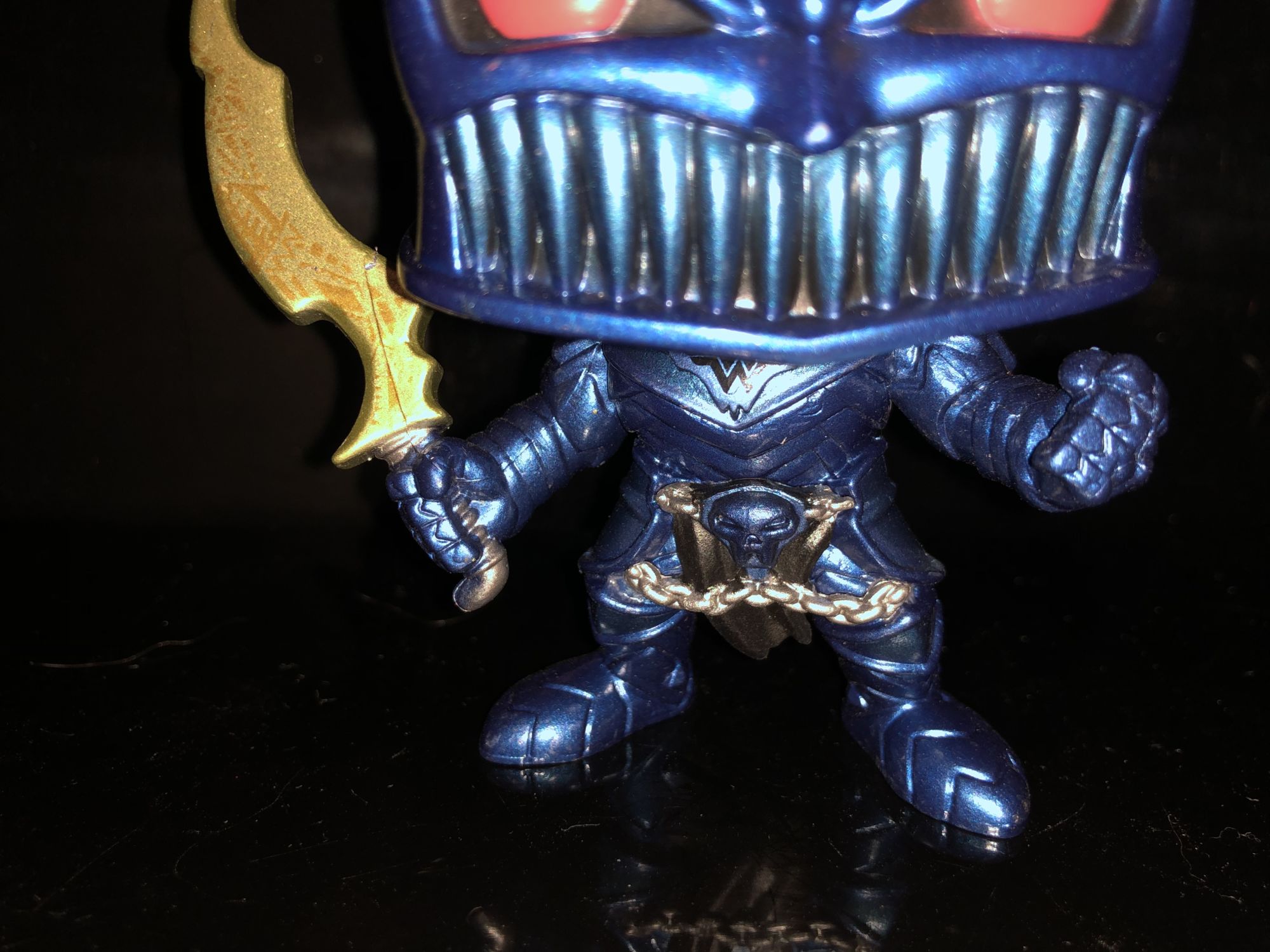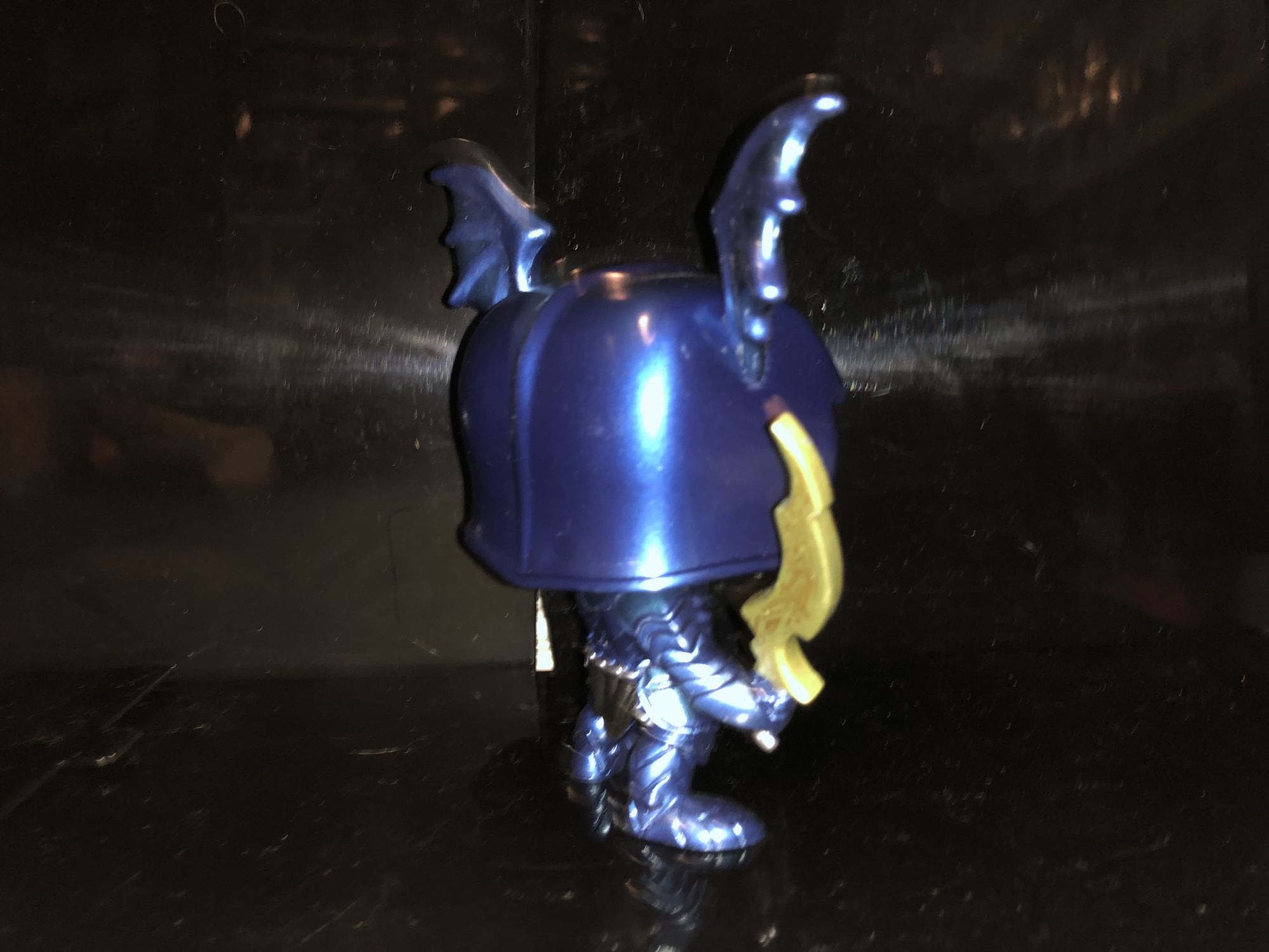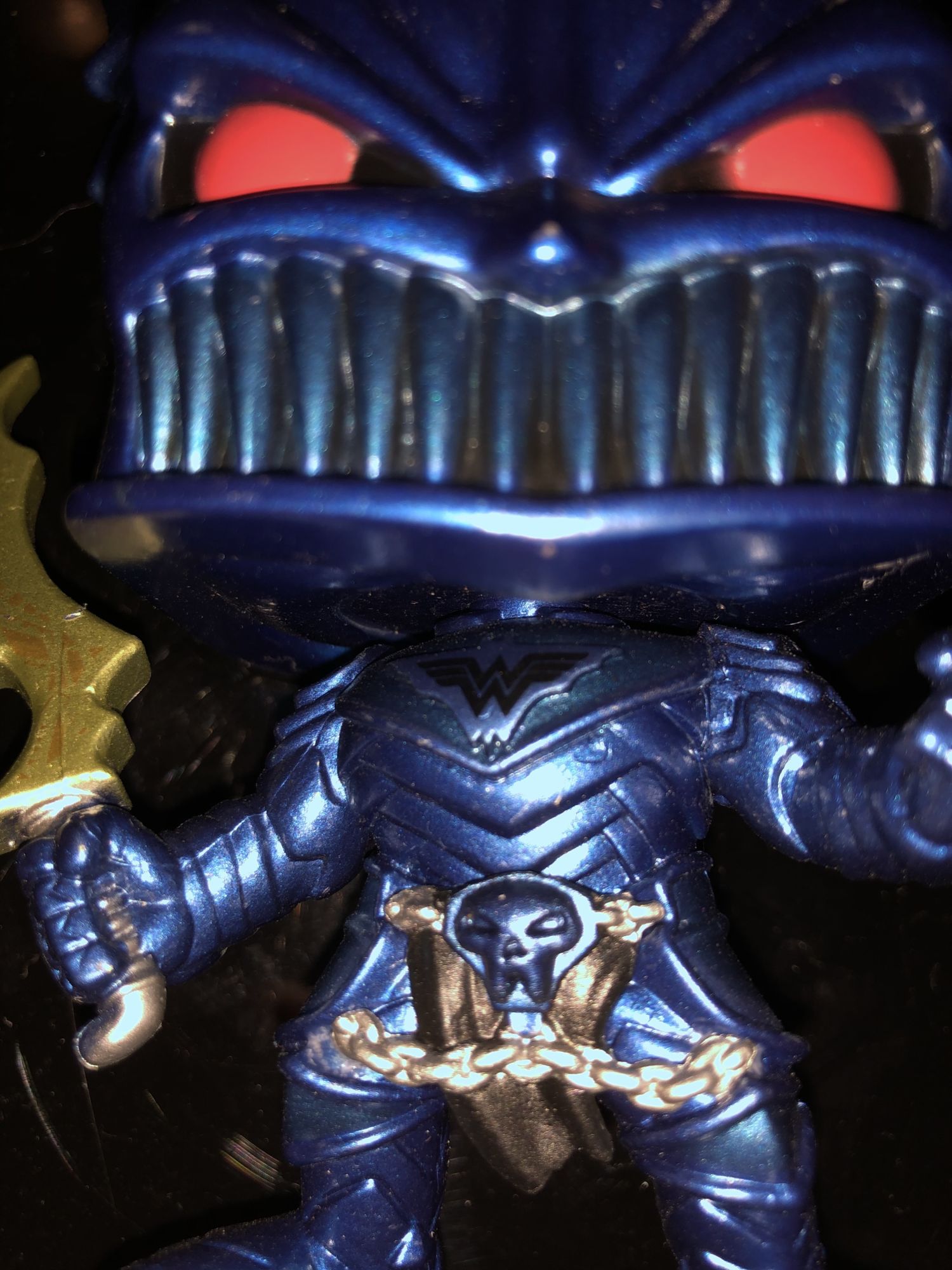 The character itself seemingly features a metallic style paint. The character is remarkably detailed for it being Popified and fights the comic book portrayal perfectly and I just love it. These smaller versions of these dark nights: Metal evil Batmen characters are all highly detailed and are cheap and great collectibles for fans. The metallic paint is a nice touch and it really makes the armor shine. If you look above the chest you can even see a small Wonder Woman symbol as this is supposed to be the Batman/Wonder Woman combination figure. The little details on Funko Pop’s are what make these little collectibles shine. The price is cheap and you’re getting some collectibles that aren’t made for a wide variety of things.