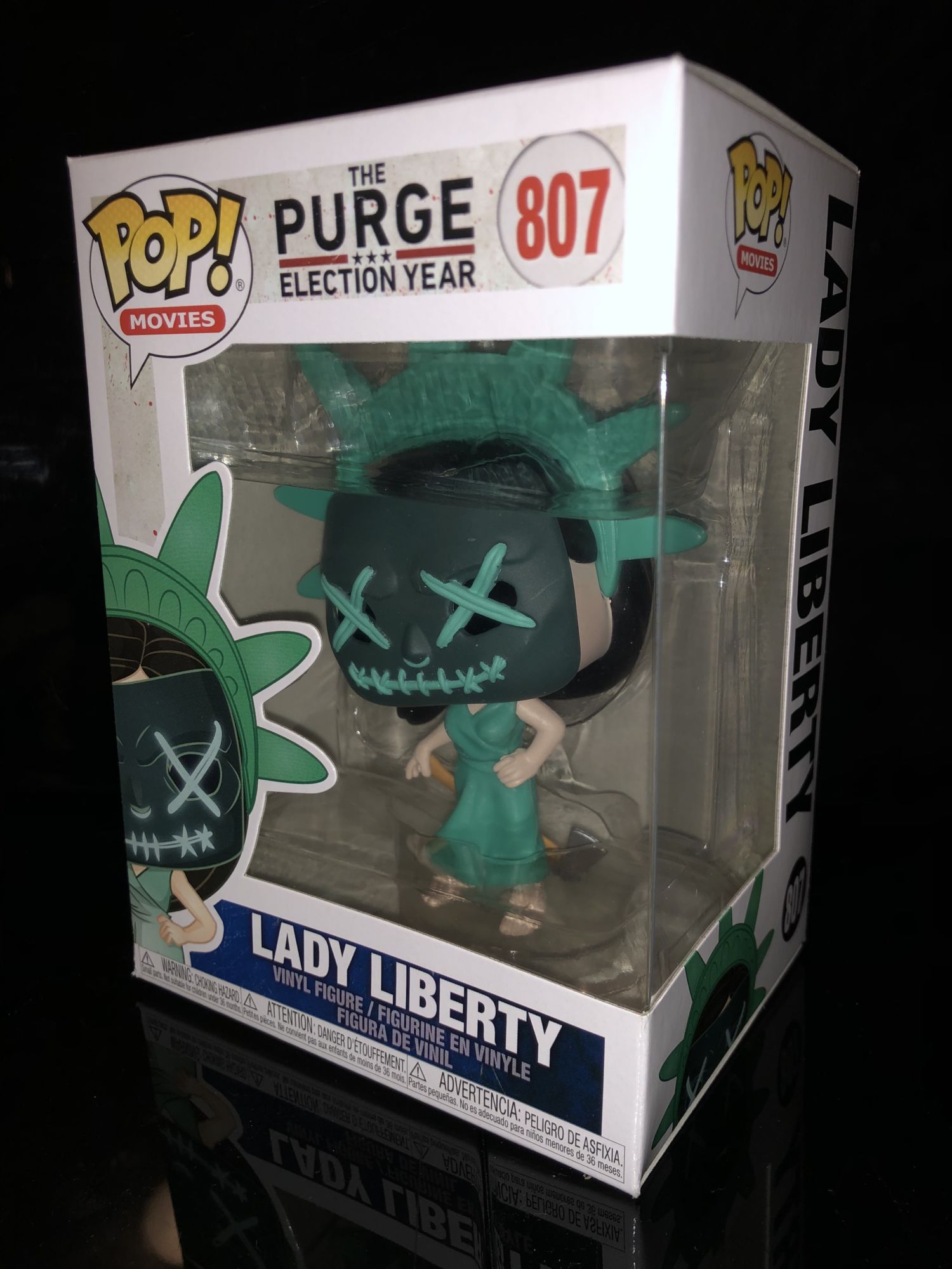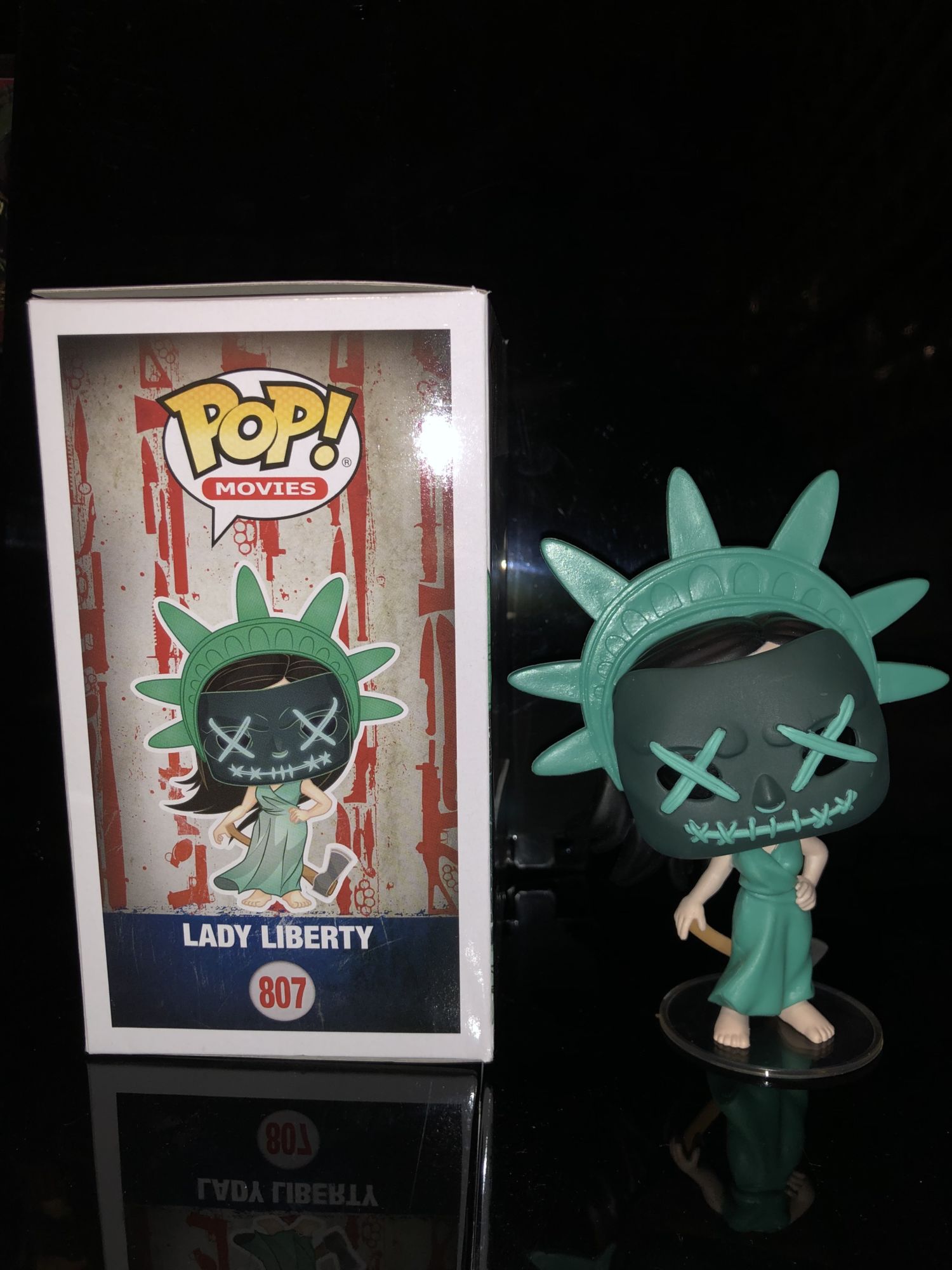 The Purge has had some amazing movies over the years, some good and some bad. The characters that come out of these movies have been very unique as we get to see get people to let their dark side out. I was surprised to see The Purge come out with collectibles this year through Funko. Five Funko Pops has already been announced earlier this year a lot of them coming from The Purge: Election Year. One figure, in particular, was very eye-catching to me and I just had to have it. Here is is the review for the badass Lady Liberty Funko Pop.