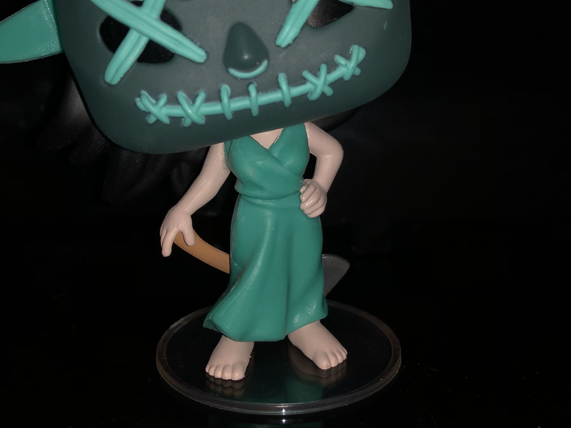 The Lady Liberty figure showcases a female in the iconic and patriotic lady liberty outfit. This time with a more The Purge styled horror twist. It does feature one of the iconic Purge masks with the eyes crossed out and stitched mouth. She is holding an ax behind her back giving you unease of when she will strike. I do wish this character was glow-in-the-dark as the mask itself would look amazing being lite up at night. The design of this character is probably what intrigues me the most and I really love all the little details in it. From her headpiece to her gown it’s so much to look at and is a worthy piece for any Purge collectors collection.