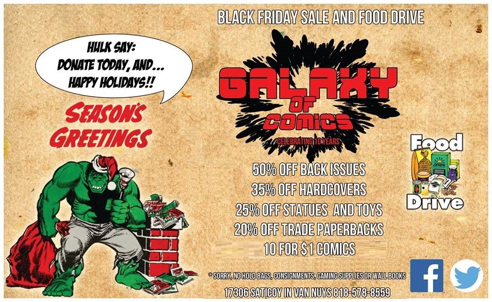 Happy Thanksgiving America… tomorrow Black Friday begins. Here are a few comic book stores around the country – and beyond – running events. If yours isn’t listed a) should have sent it in and b) you still can for a round up tomorrow morning…
