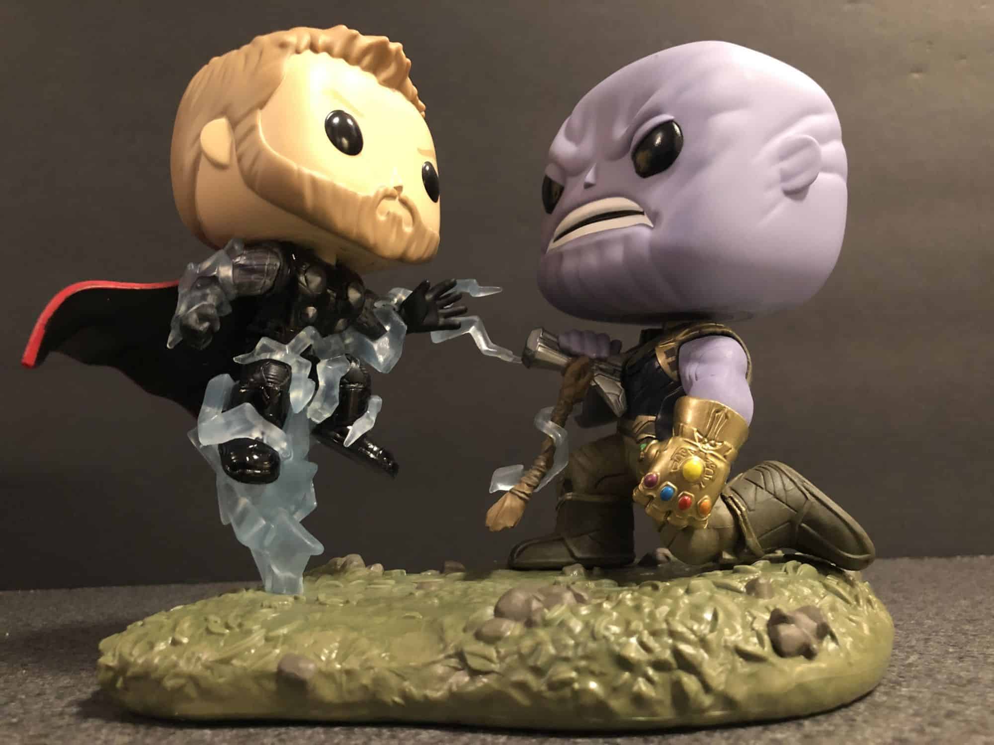 Funko and Marvel go together like peanut butter and chocolate, and their waves of Infinity War Pops were some of the most popular of the year. They snuck in two more quick releases before the year’s end, and we are going to take a look today at the Thor Vs Thanos Movie Moment Pop, and their Hot Topic exclusive Infinity Gauntlet.