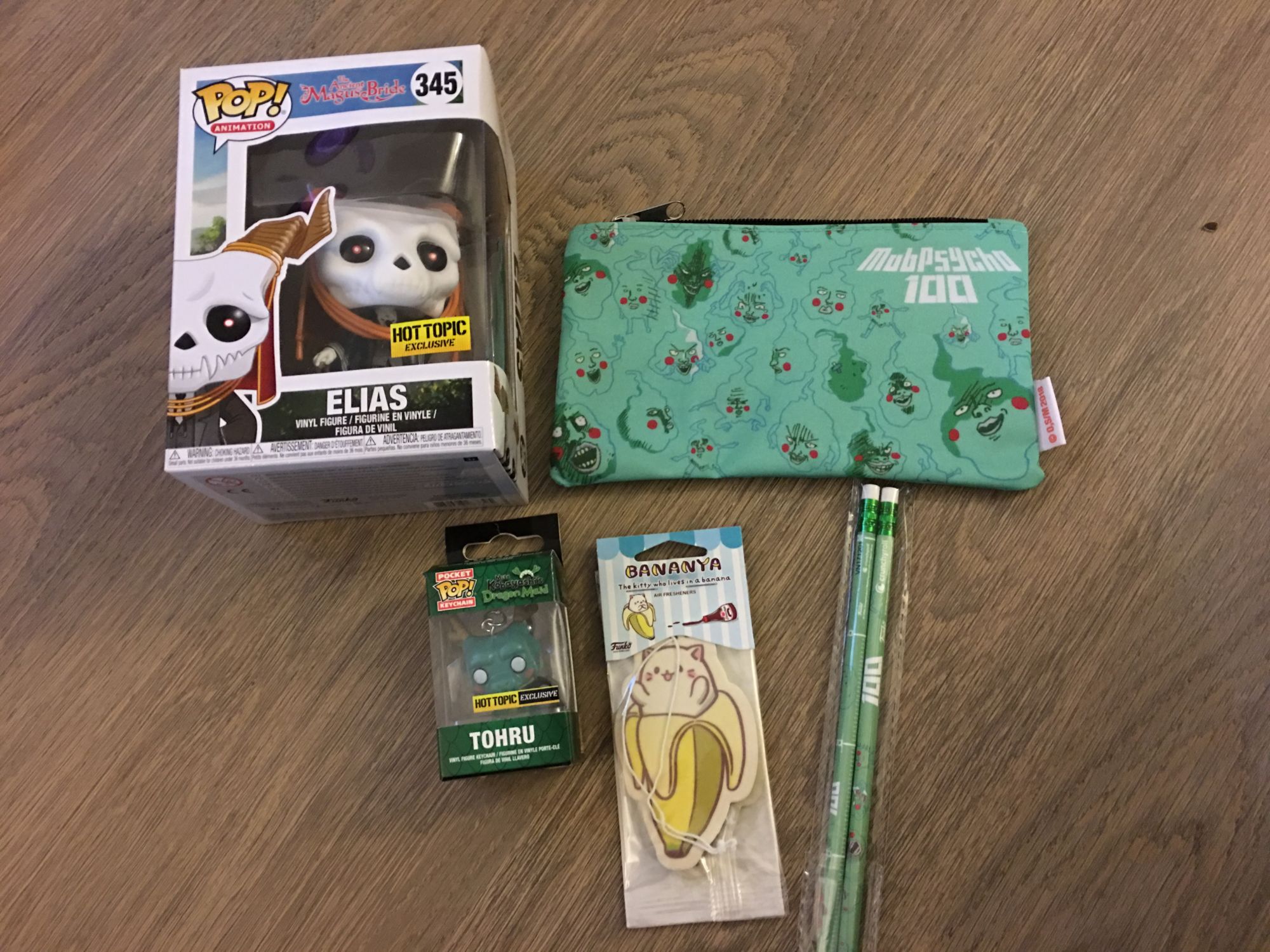 All month long Hot Topic and Crunchyroll will be celebrating anime, which they’ve cutely named Ani-May! This year for the celebration, Crunchyroll has released an exclusive collection box filled with goodies from some of Japan’s hottest titles. Included in the box is: Miss Kobayashi’s Dragon Maid key chain, Ancient Magus Bride Funko Pop! Elias vinyl figure, Mob Psycho 100 pencil and bag, and a Bananya air freshener.