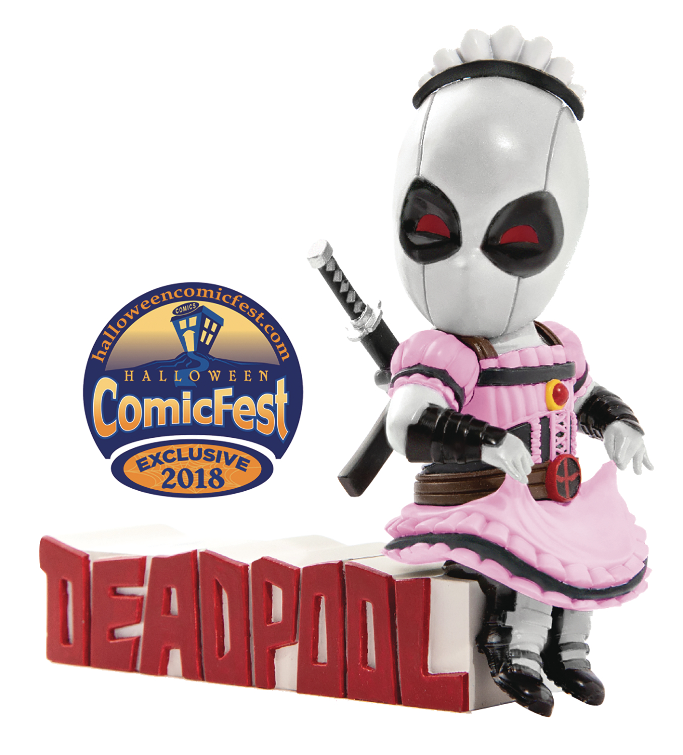From Beast Kingdom. A PREVIEWS Exclusive! Beast Kingdom has paired up with Marvel and Diamond Comics to offer fans a line of mini Egg Attack figures inspired by the merc with a mouth, Deadpool! Standing about 3.5″ tall, this sassy subservient Deadpool figure features exclusive paint deco of Deadpool in his X-force outfit with a pink maid uniform over top! Released to coincide with Halloween Comicfest 2018, don’t miss out on this PREVIEWS Exclusive Deadpool Servant X-Force Figure!