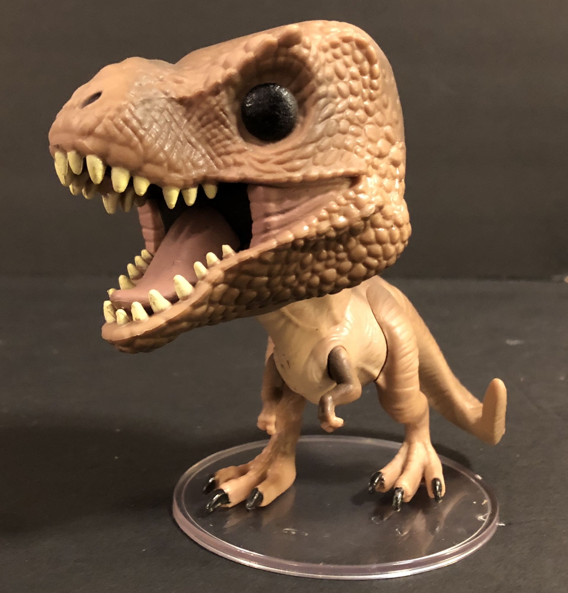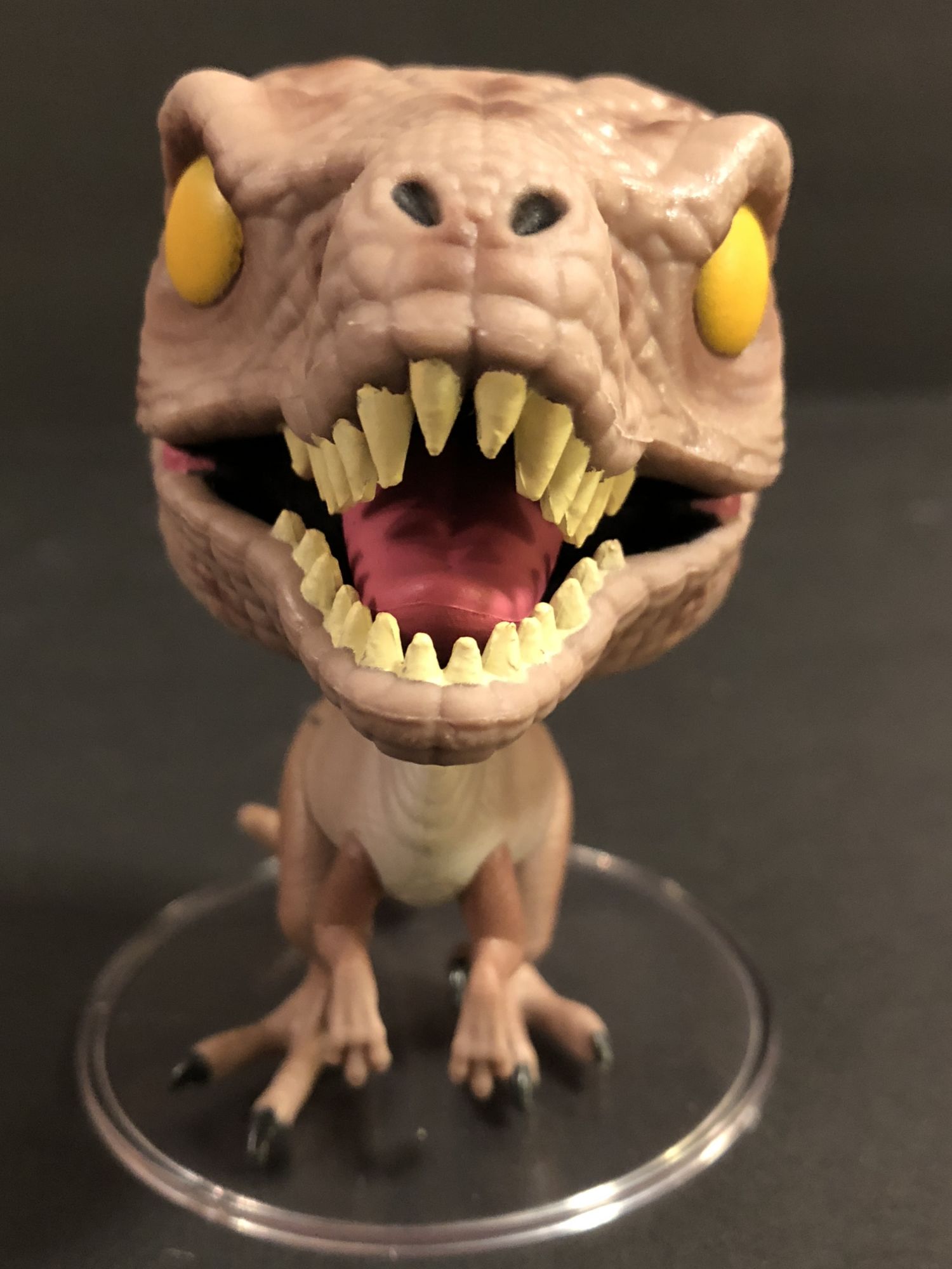 The Raptor Pop is my least favorite of the three. First of all: it cannot stand without the figure stand. I tried everything, but its feet are so uneven that it falls right over. While that is disappointing, it comes with a stand, so it’s not really an issue. The sculpt is excellent, and I think this one could have benefitted from a more running pose like we have seen in the films.