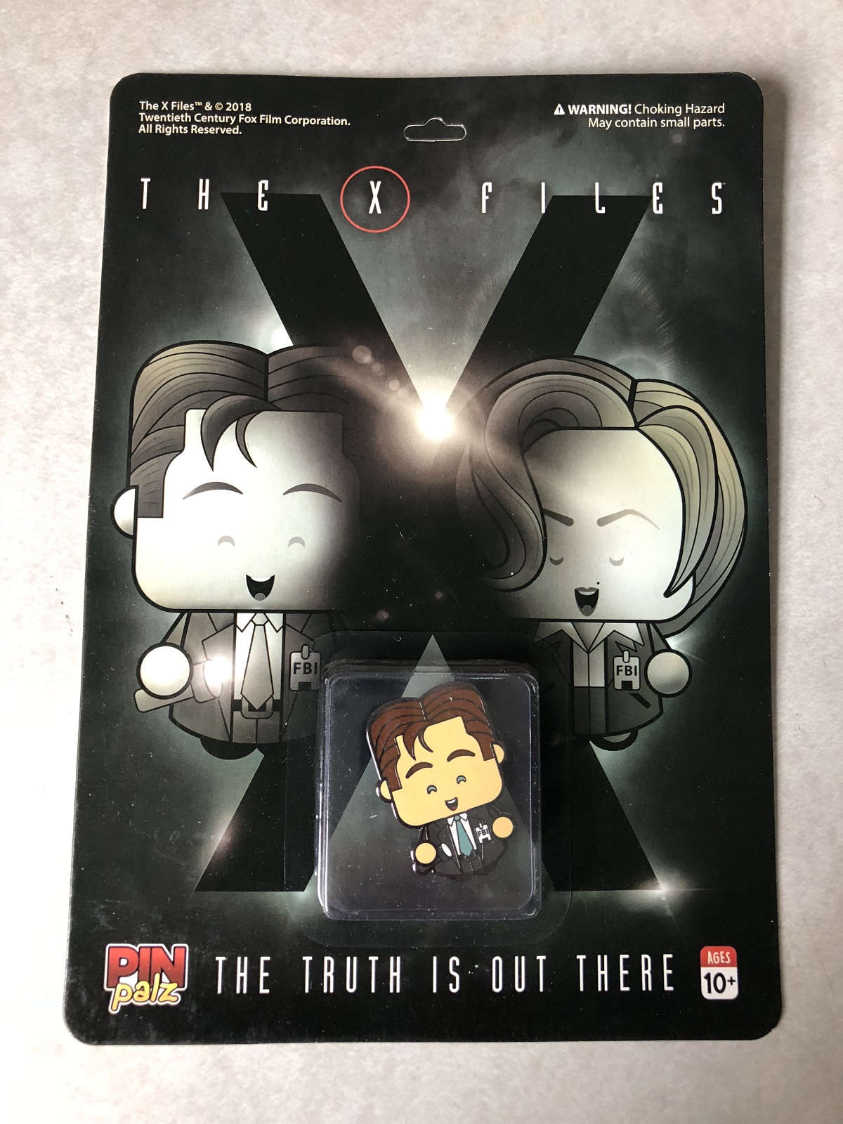 First up we take a look at the pin for this box, which is from the TV show The X-Files, as they sent us our own little Agent Fox Mulder. Granted, he looks a little happier than the real Mulder does in the show, but you get the idea. He was one of four options which included Scully, a rare pin in the form of an alien, and the ultra-rare pin in the form of Richard Langly from the Lone Gunmen. The enamel design is nice with Mulder holding a flashlight and his badge over his shirt at work, while the rubber stopper on the back is a nice addition. This one is a winner for us.