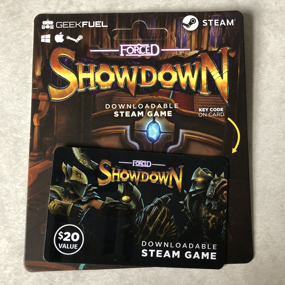 The game in this box is Forced Showdown, which is a deck-building bullet hell brawler. Yes, we know, those terms don’t normally go well together, if at all. But the game utilizes mechanics from all three genres to give you a partial RPG experience paired with a partial intense wargames experience. The game has been out for almost two years now and when it originally came out I remember it had some buzz but it didn’t really garner the massive audience they were hoping for. Hopefully, all the copies going out to people will generate some new interest in the game. It’s a pretty decent game, nothing bad about it, but also isn’t super extraordinary. It’ll be fun for whoever gets into it.