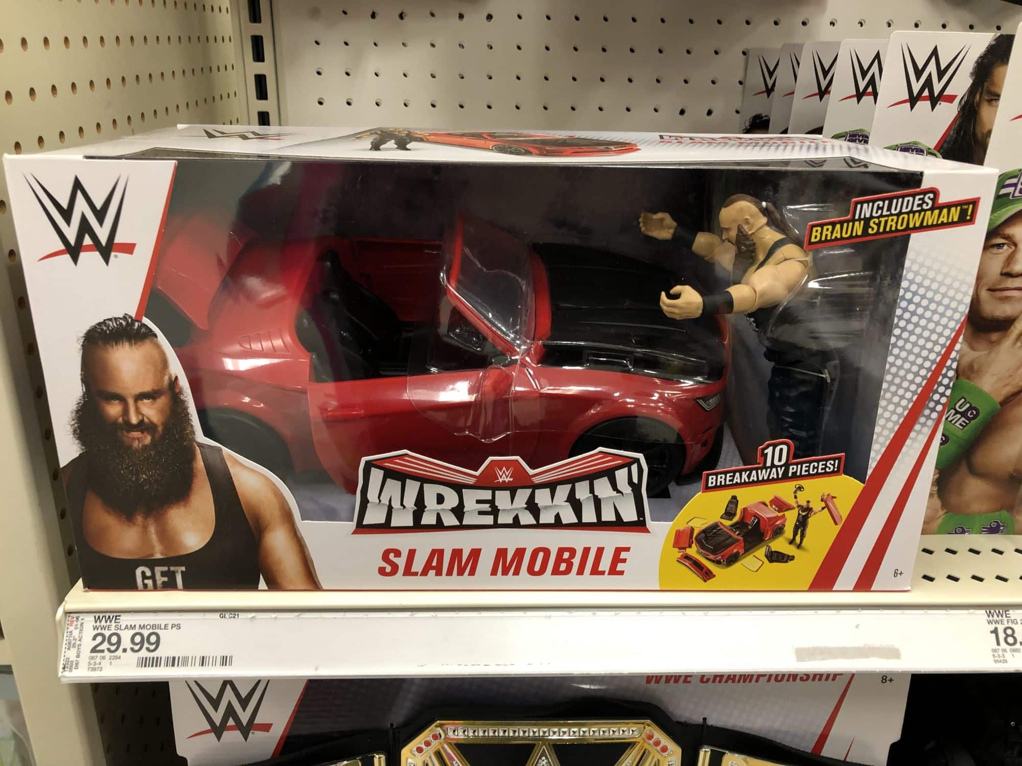 WWE fans can keep an eye out for the newest wave of Retros, while the new slam mobile car playset and Braun Stroman are popping up at Target.