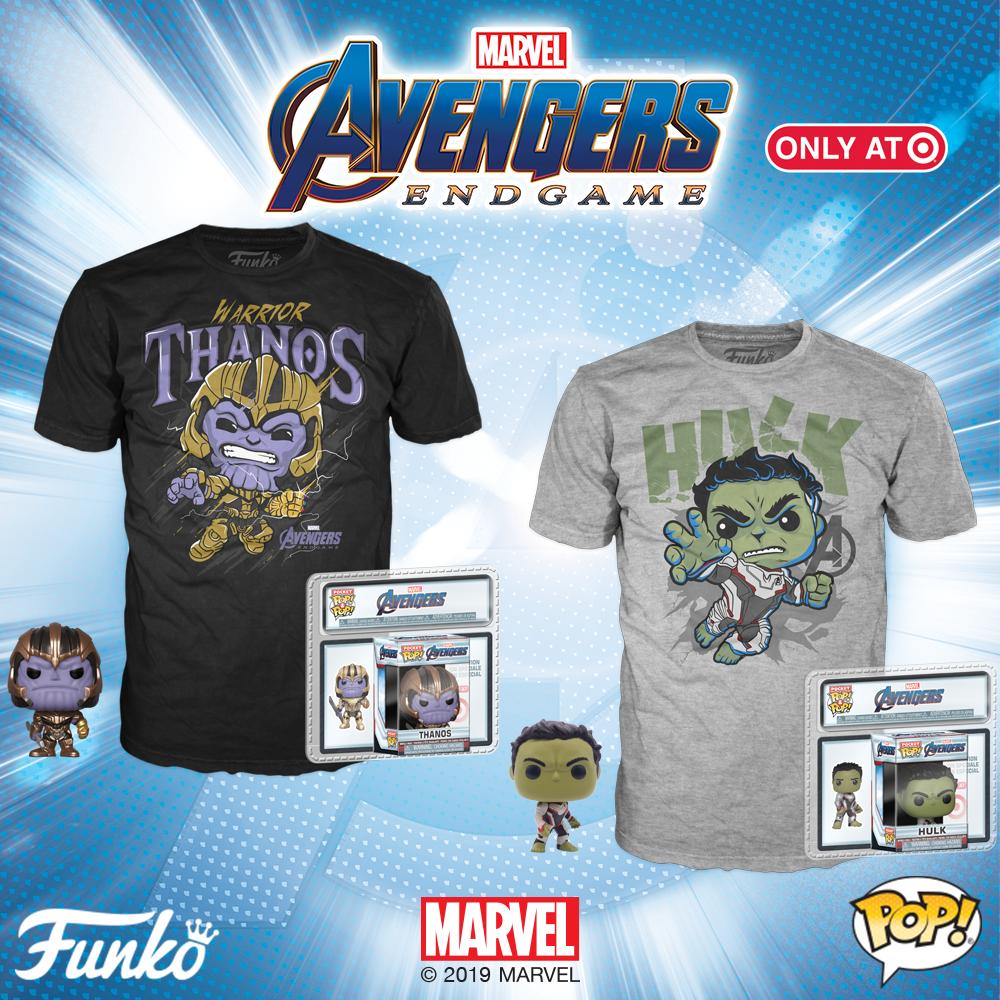 Look at all the Avengers: Endgame Pop Tee packs! Target has an exclusive Iron Man in adult sizes, while they will also have Thanos, Hulk, Thor, and Captain America in kids sizes. That is pretty cool. Another Hulk can be found at Hot Topic, while another Captain America will be at FYE. All of these packs come with a Pop figure of the character.