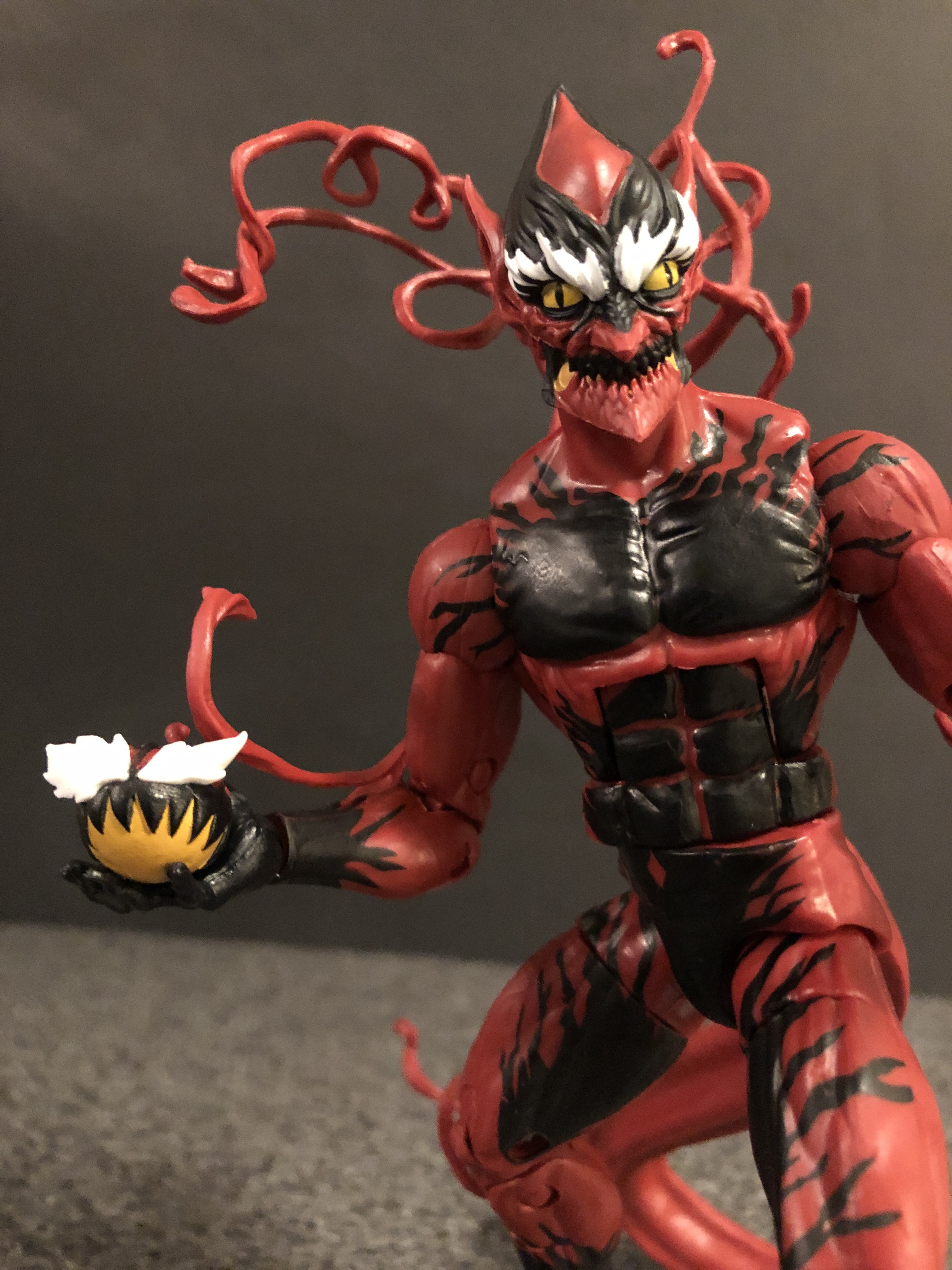 A figure that is not a letdown is the Red Goblin. This may be the fastest turnaround time from page to figure Hasbro has ever done. I feel like his debut was only a couple months ago (yes before you say anything I know its been longer). Anyway, in the comic I didn’t care for the character or like the design, but as a figure he is quite the sight. I love the little Carnage Pumpkin Bomb that he comes with, and the tendrils add some cool elements to complete the look. That grin on the head sculpt is perfect.My only knock really is the tail: it is just a molded, soft plastic tail that pretty much stays in place. It helps with posing and keeps him upright, but limits him some for more dynamic posing. This one is the surprise of the wave.