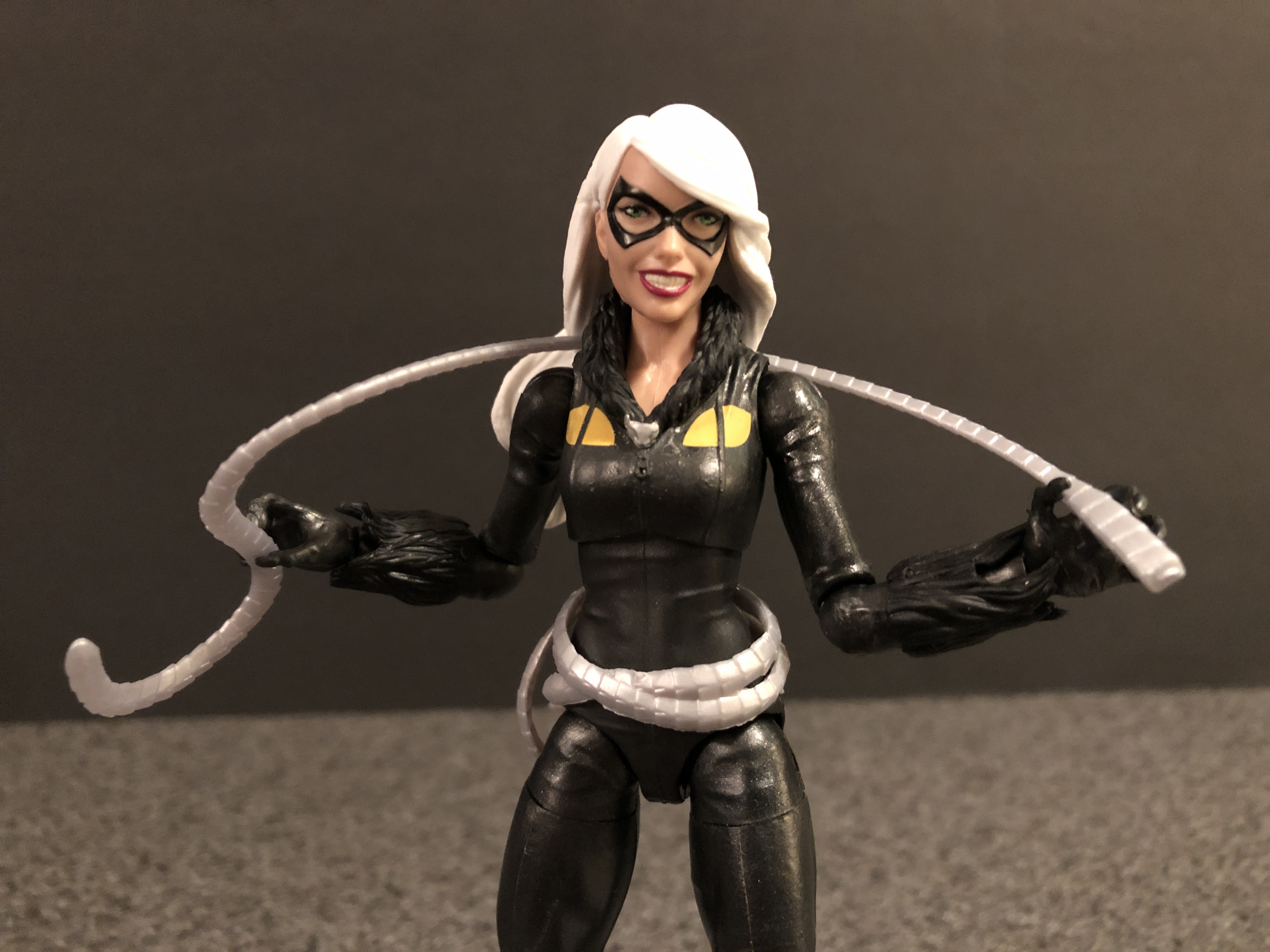 Two females are included in this wave, the first I opened was Black Cat. Man is it weird to see this costume. I love how the fur pieces slide around on her legs and arms, it makes for less obstructive posing. I really like the head sculpt on this one too, it has a slight animated feel to it and it works. Her whip is useless, it is plastic and feels and looks cheap. I was all ready to trash this figure before I opened it, but I actually kinds like it. Not classic Felicia but a solid figure anyway.