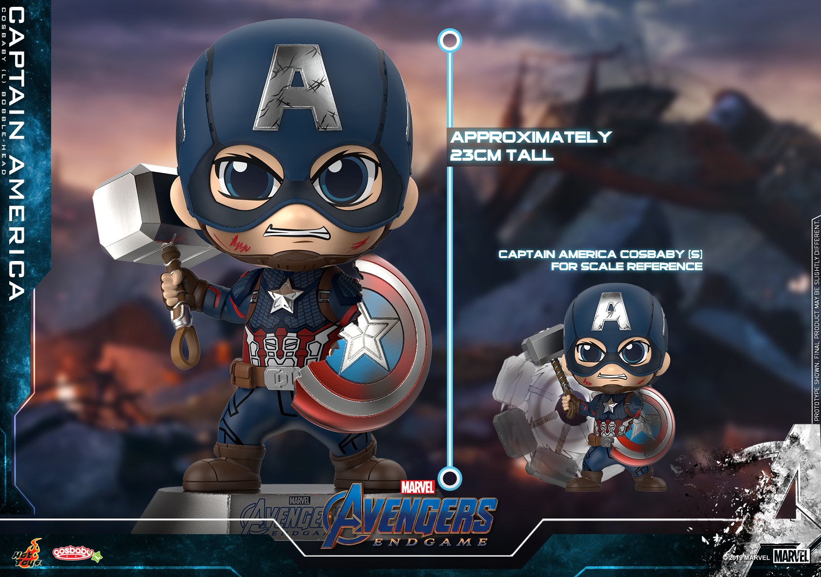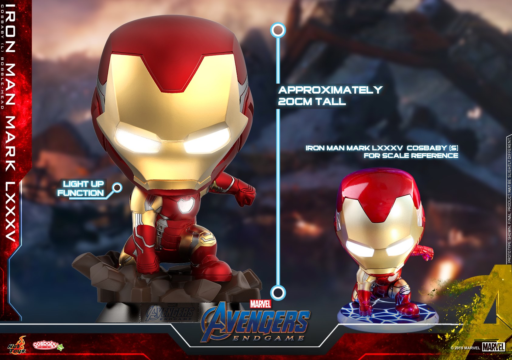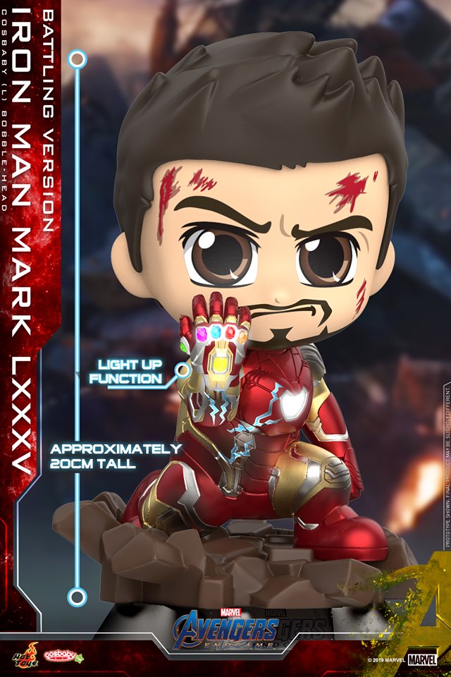 Capturing character’s signature poses from Avengers: Endgame movie scenes, Cosbaby (L) Bobble-Head measures approximately 20-23cm each, presents our beloved super heroes in their classic battle suits, including Iron Man Mark LXXXV (Battling Version) and Iron Man Mark LXXXV with LED light up function; and Captain America wielding Thor’s Mjolnir and damaged shield.