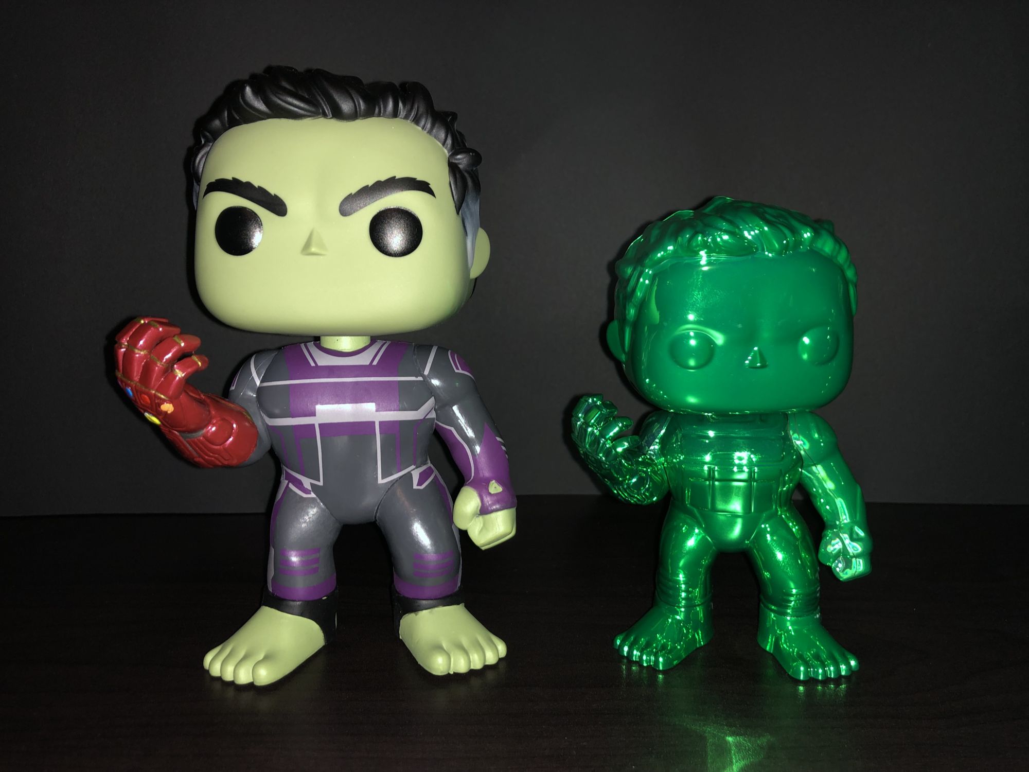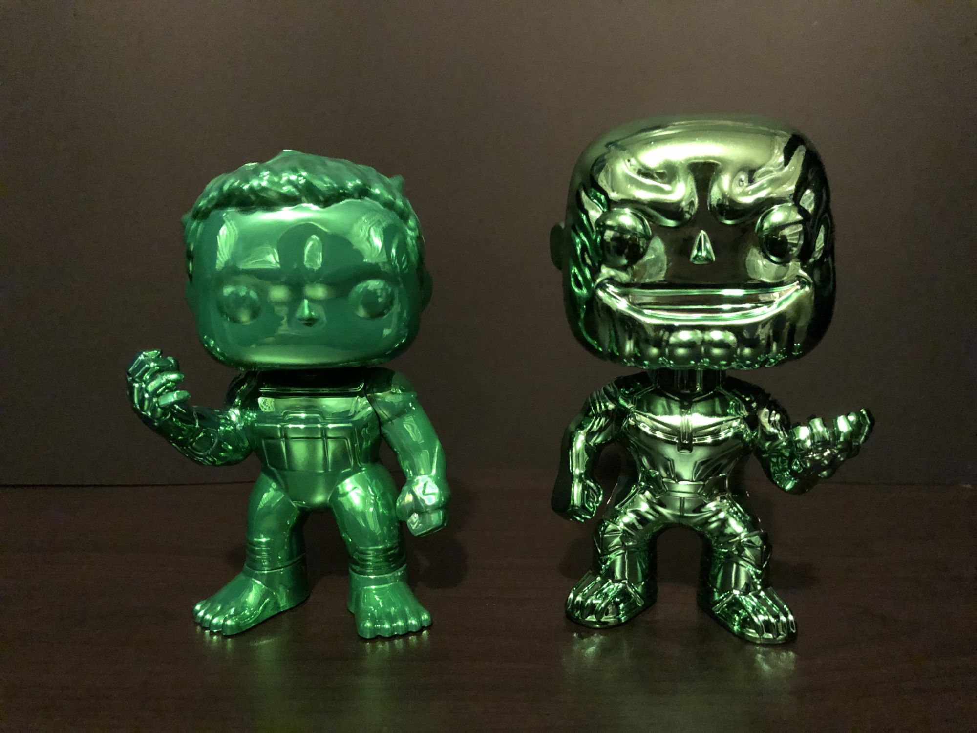 With this not being the first chrome set to I wanted to compare it to the Thanos set. Green vs Green seemed like the best and wow you can see the difference. The paint alone is completely different. Thanos seems a little cheap but with that Mardi Gras bead style. Hulk is the same plastic but the paint screams out to you.