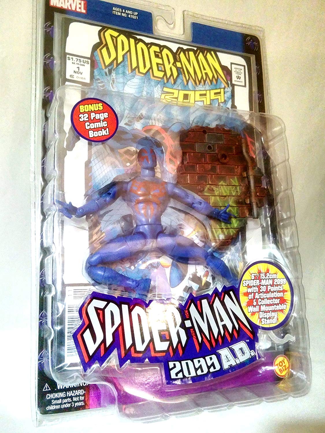 Starting off the top collectibles for Spider-Man 2099 is the old 90s toy that is a Spider-Man 2099 action figure and comic book bundled set. This action figure set came with a very special white cover second printing variant of Spider-Man 2099 #1 (1992). This figure was sold by 20 beers it is quite hot on the market whether it’s toy collectors or comic collectors this 2099 collectible pack is worth adding to your collection.