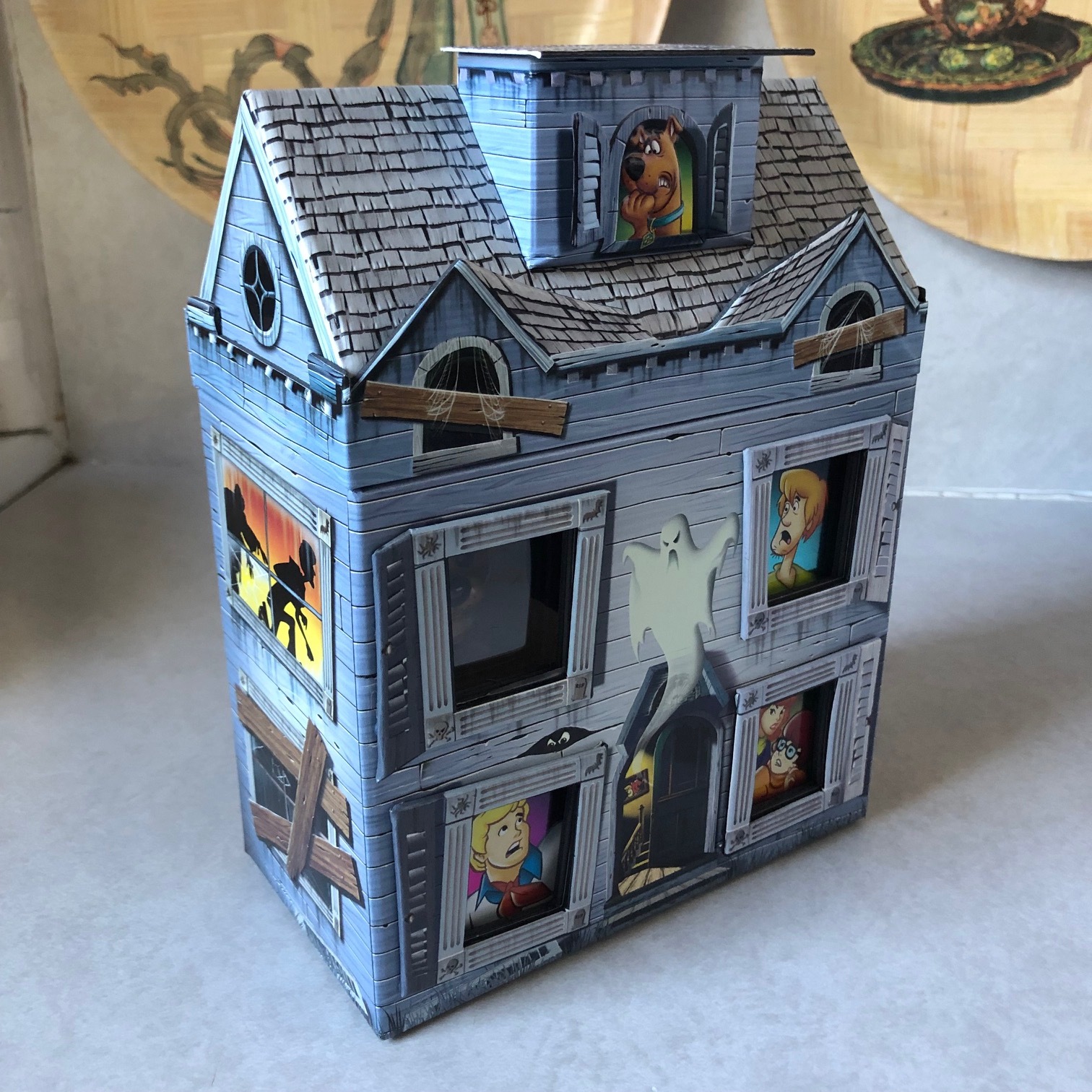 Going over the box first, let’s just take in the moment that they made this look like a spooky mansion with all of the gang in every window. This is an awesome little box set that makes it worth putting on display and showing off to people who know what’s up. The box is basically a thicker cardboard than your usual boxes like this, and the top just slides off. There’s no real lock to snap to this, its a cardboard box that’s meant to be this way for easy access.