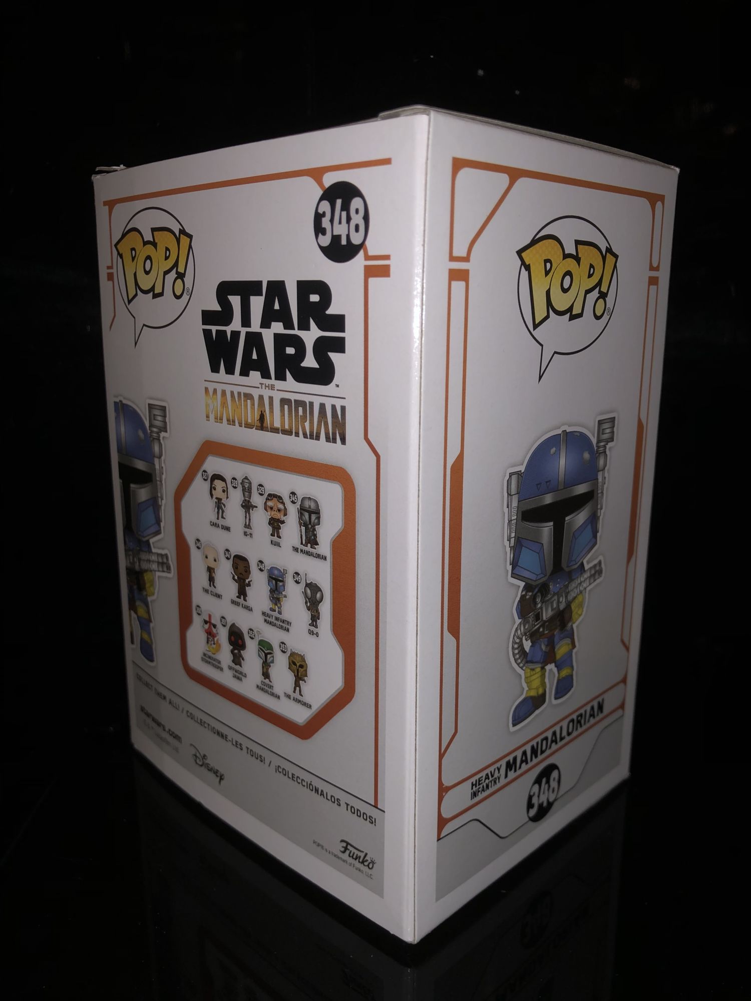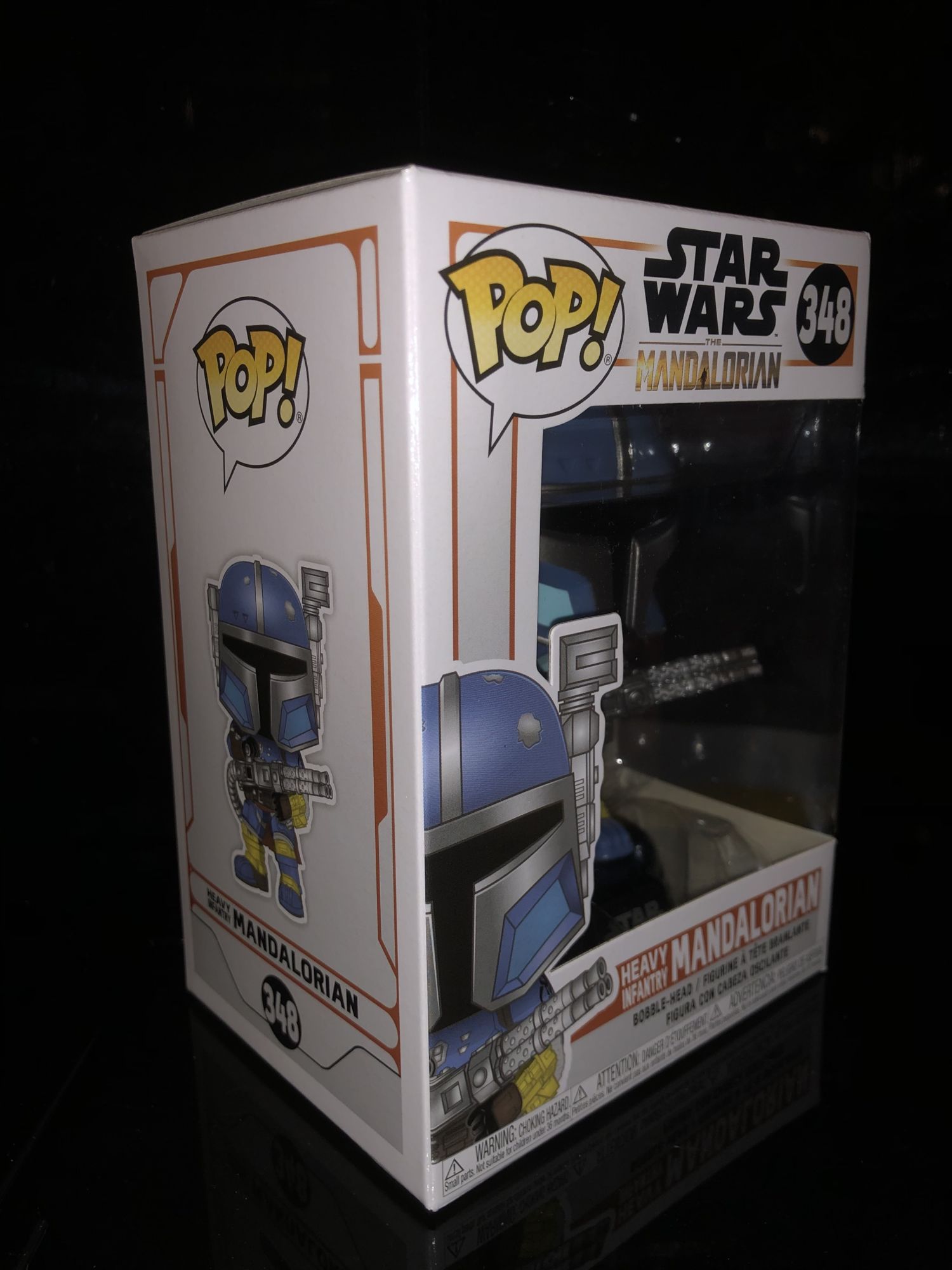 We continue on to our path with the Heavy Infantry Mandalorian Funko Pop. This is one of the first new characters we are seeing from this wave. Nothing is special for his box but the blue really pops with the white box. I was hoping this one would have a secret hidden in one of the flaps as this is the character that really started it all in the third episode with their ongoing catchphrase. Nothing is hidden but don’t worry as this figure is pretty badass and a worthy accessor to The Mandalorian.