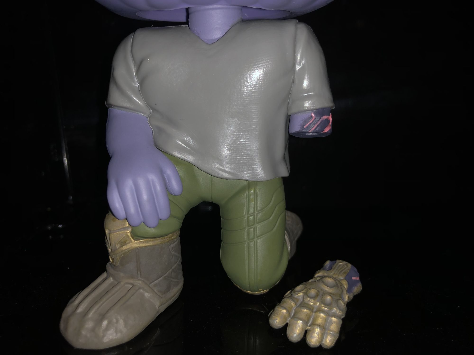 I honestly was pretty excited another MCU Funko Pop was on the way. However, I wasn't that excited about the figure but that all changed when I got Thanos is my hands. This figure I badass in more ways than one. First off, this is the first Funko POP to feature a removable piece that can enhance the figure. Thanos is placed on his knee with the burnt aftermath of using the stones. The design and sculpt of his burnt skin and crushed gauntlet are pretty amazing. It wasn't until I saw the design up close that I really fell in love with it. The removable arm is a nice touch and fits the scene just right as Thor slices off the gauntlet to try to change the future. Nice farmer clothes and Burt face really make Thanos his own unique collectible and Funko did just right by it.